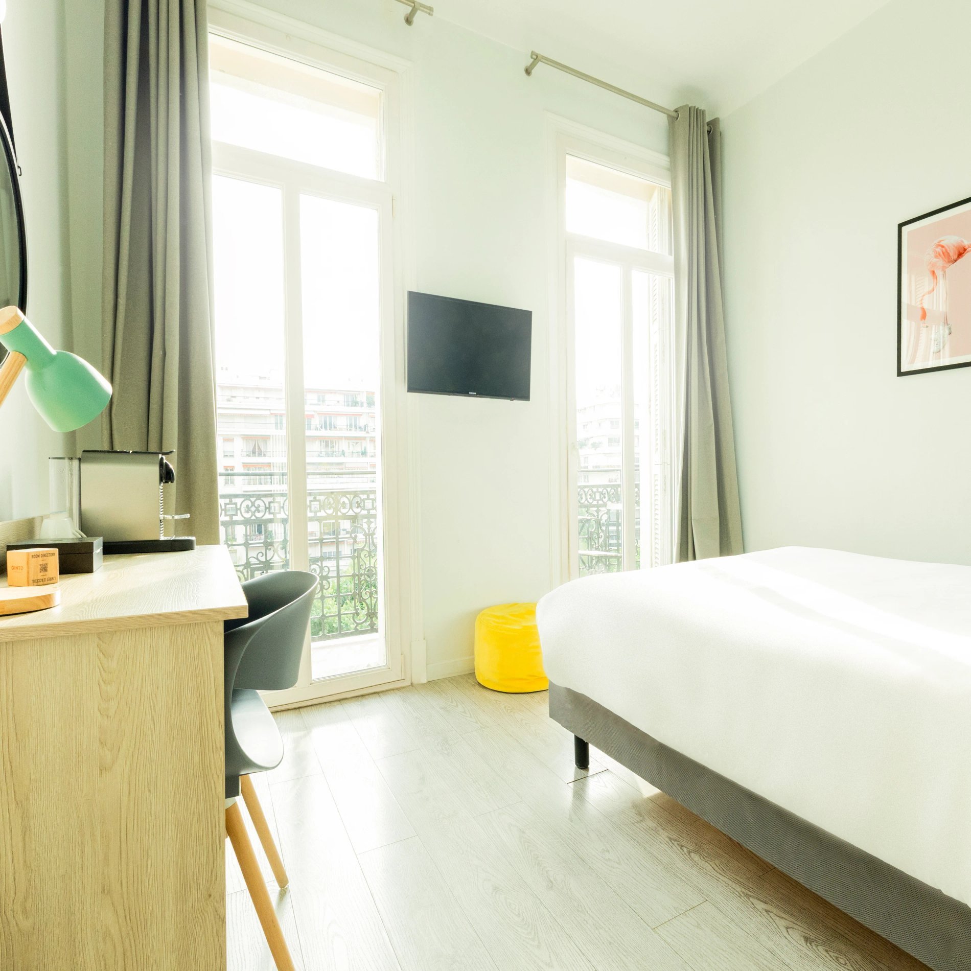 Idéales pour un séjour de caractère en plein cœur de Nice, nos chambres allient confort moderne et élégance historique face au Square Mozart. Venez vivre une expérience unique à l'Hôtel Aria !